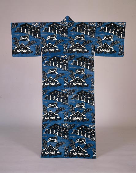 芹沢銈介:手織木綿地型絵染着物 壺屋 (1960)
