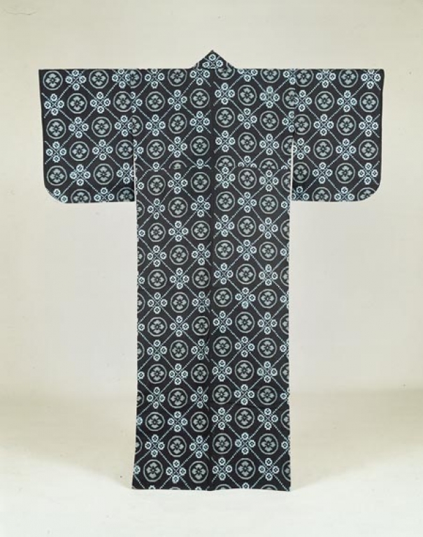 重要無形文化財久留米絣技術保持者会:久留米絣白中柄単衣 花菱文 (1958)