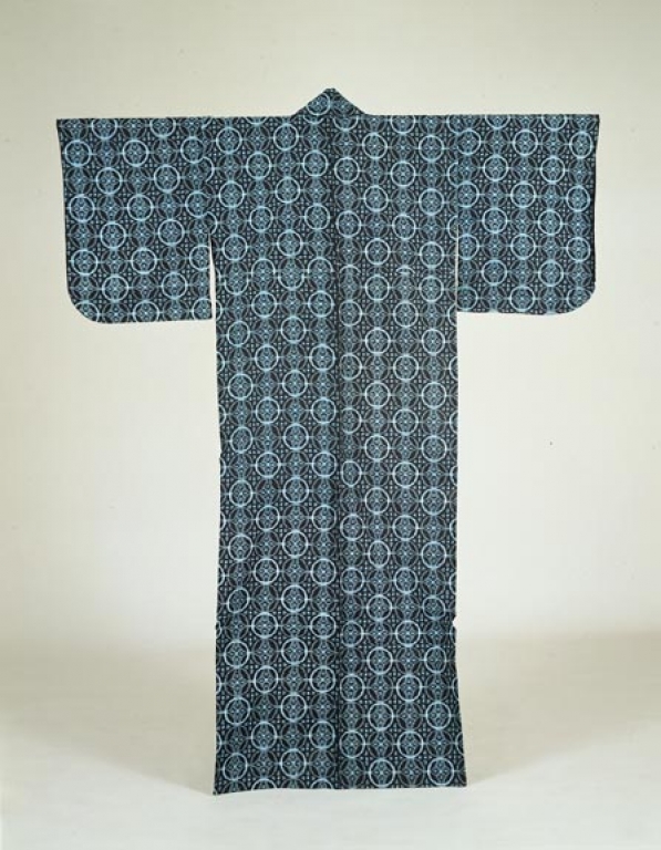 重要無形文化財久留米絣技術保持者会:久留米絣白中柄単衣 輪つなぎ文 (1958)