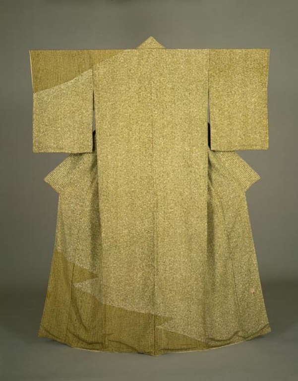 小倉建亮:縮緬地絞り染縞文訪問着 虫の音 (1966)