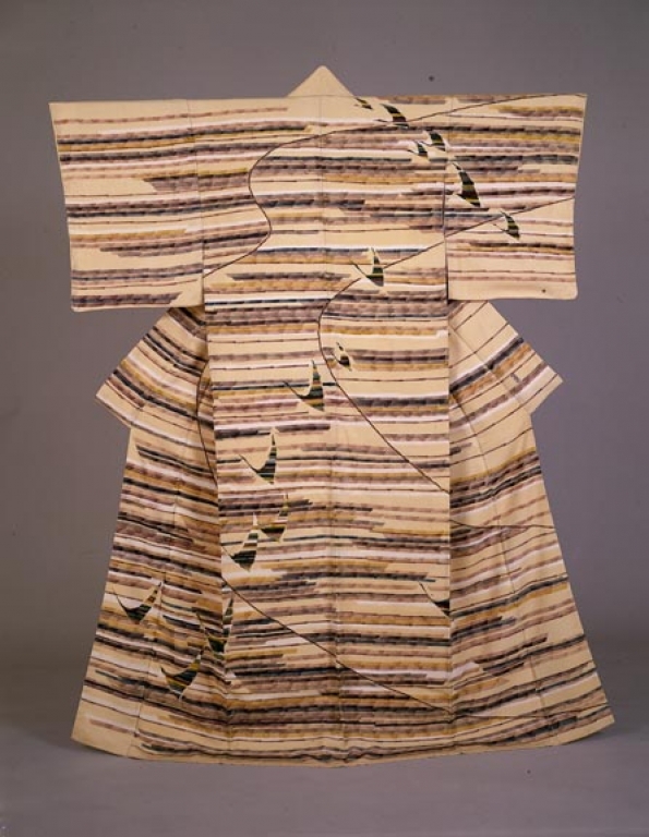 小山保家:木版染訪問着 翔 (1969)