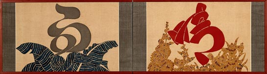 芹沢銈介:紬地型絵染二曲屏風 晴雨 (1962)