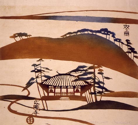 稲垣稔次郎:紙本型絵染額面 双ヶ岡 (c.1961)