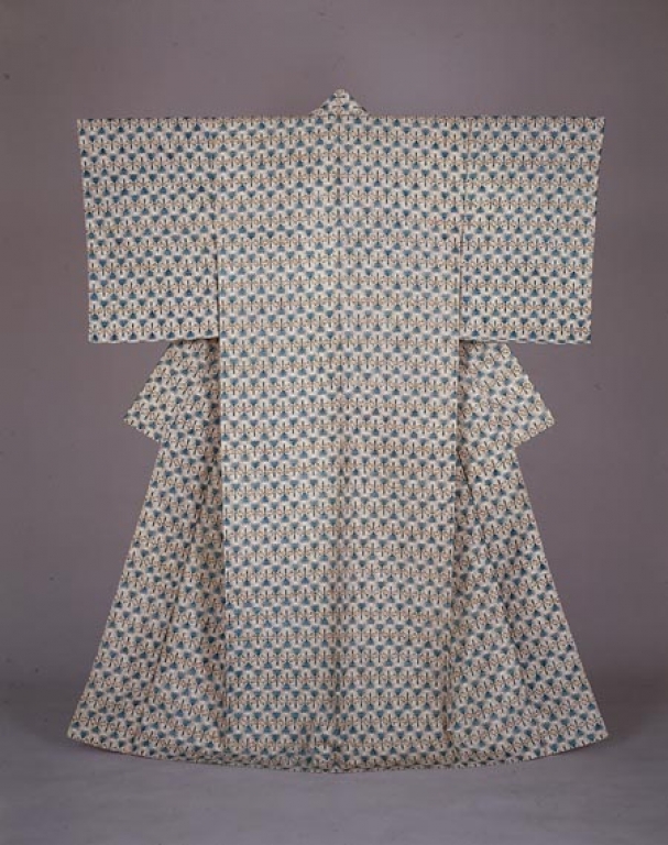 鈴田照次:紬地木版摺ほととぎす文着物 (1973)