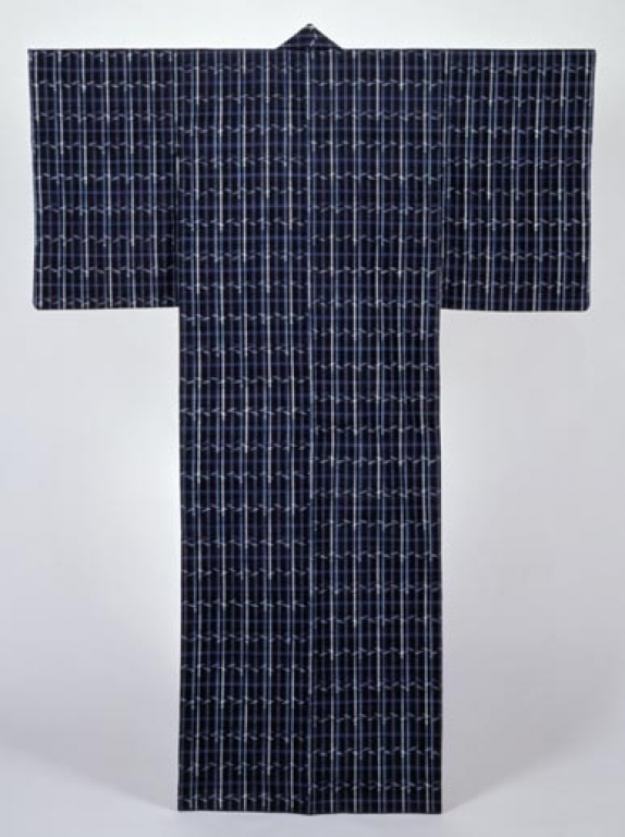 宗廣力三:格子竹文様藍地絣着物 (1983)