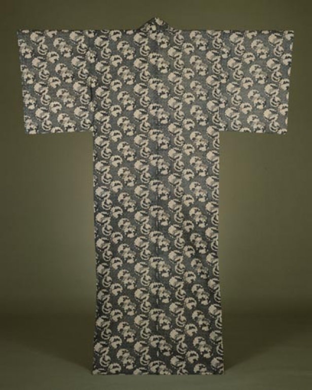 小宮康正:長板中形ゆかた 紗綾形地雪輪の中に松 (1988)