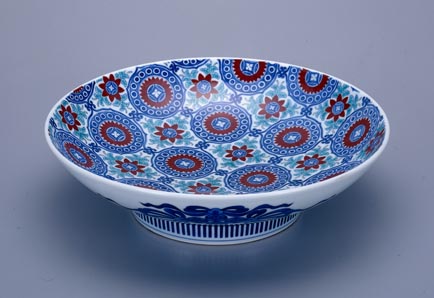 十二代今泉今右衛門:色鍋島更紗文大皿 (1955)