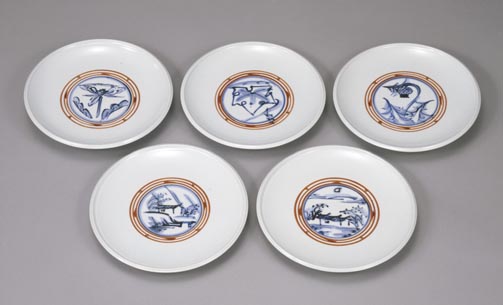 富本憲吉:色絵染付金彩絵変飾皿 (1960)