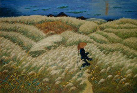 池田遙邨:うしろ姿のしぐれてゆくか 山頭火 (1984)
