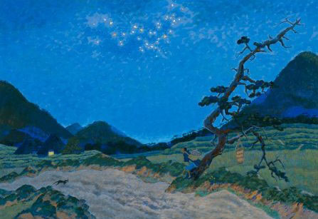 池田遙邨:あすもあたたかう歩かせる星が出てゐる 山頭火 (1987)