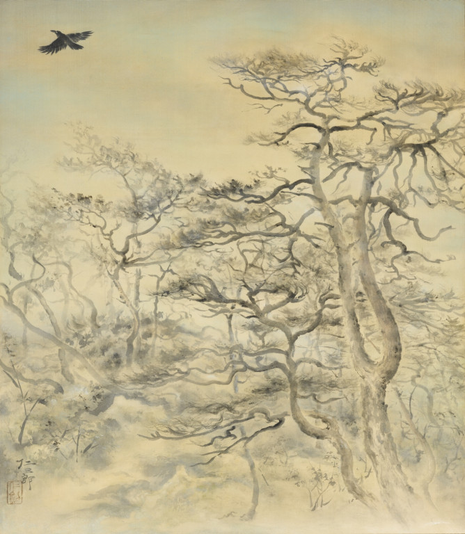 伊藤仁三郎:松林に烏 (c. 1940)