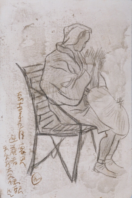 池田遙邨:大正12年9月関東大震災 避難者東京新大久保駅にて (1923)