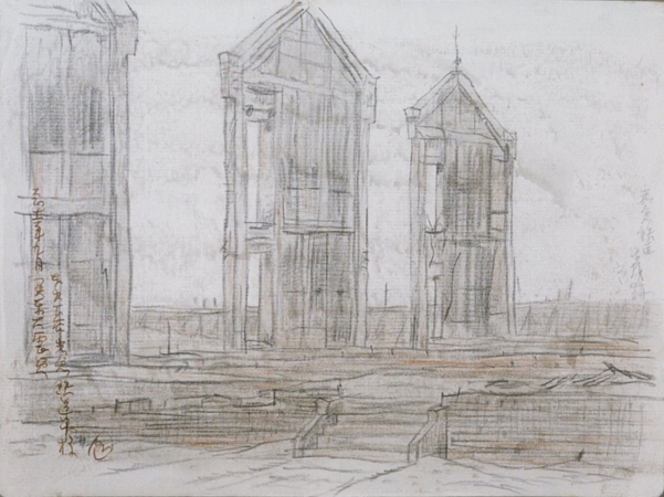 池田遙邨:大正12年9月関東大震災 東京下谷岩倉鉄道学校 (1923)