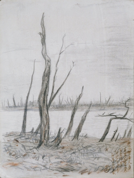 池田遙邨:大正12年9月関東大震災 東京浅草新片町より対岸を望む (1923)