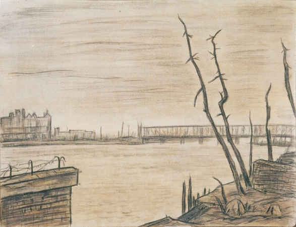 池田遙邨:大正12年9月関東大震災 東京浅草花川戸町より吾妻橋遠望 (1923)