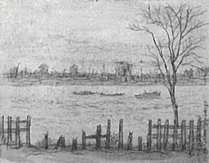 池田遙邨:大正12年9月関東大震災 東京向島小梅町より対岸を望む (1923)
