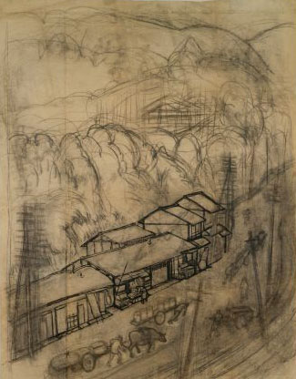 神阪松濤:《暮れゆく街道》草稿 (middle of Taisho period)