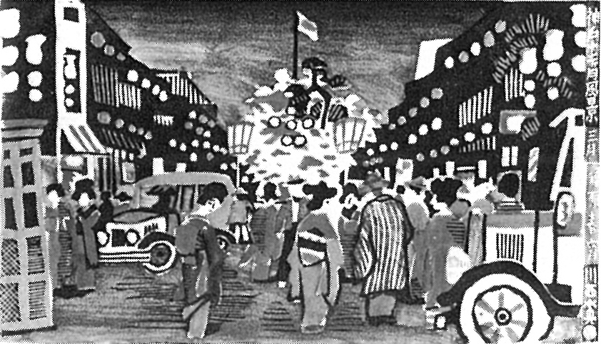 川西英:神戸12ヶ月風景(12枚組) 三月 福原春宵 (1931)