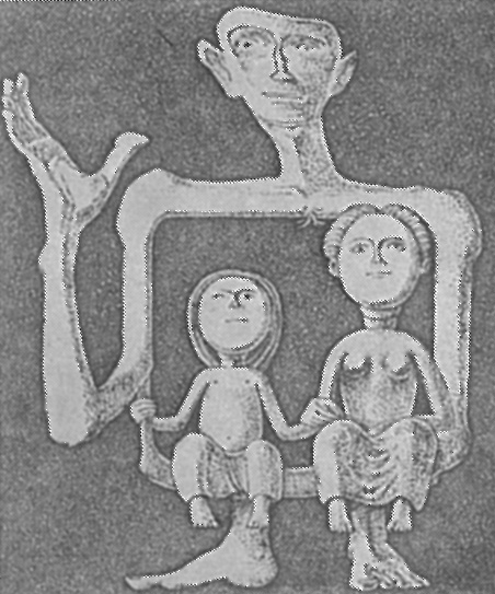 浜田知明:『浜田知明銅版画集“曇後晴”』 10、家族 (1977, 1977published)