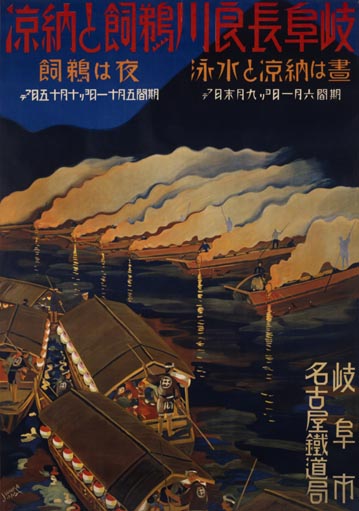 杉浦非水:岐阜県長良川鵜飼いと納涼 (1929)