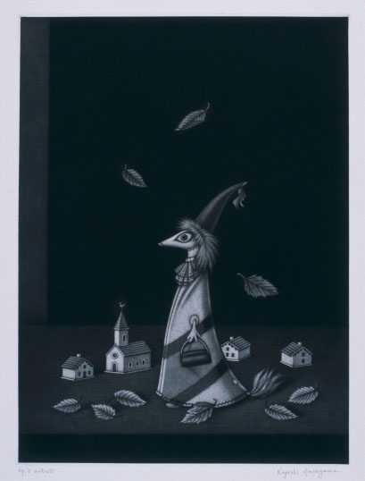 長谷川潔:仮装したる狐 静物画(フィンランド童話) (1965)