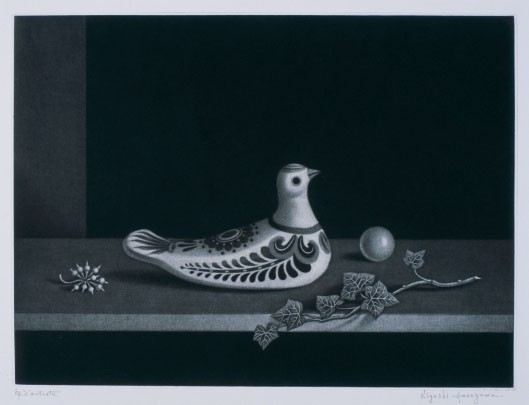 長谷川潔:メキシコの鳩 静物画 (1966)