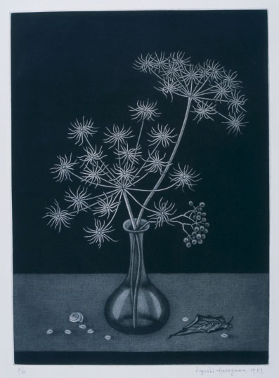 長谷川潔:瓶の秋草(ピエ・ド・シェーブル) (1959)