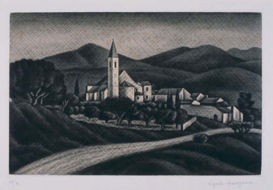長谷川潔:ロエの村道 (1928)