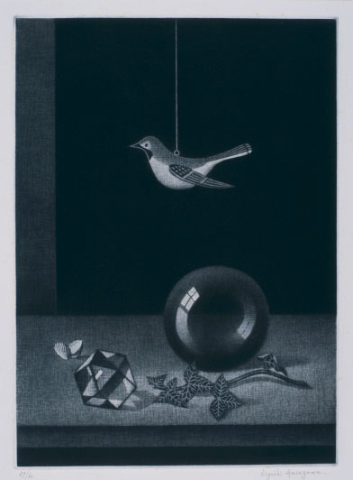 長谷川潔:玻璃球のある静物 (1959)