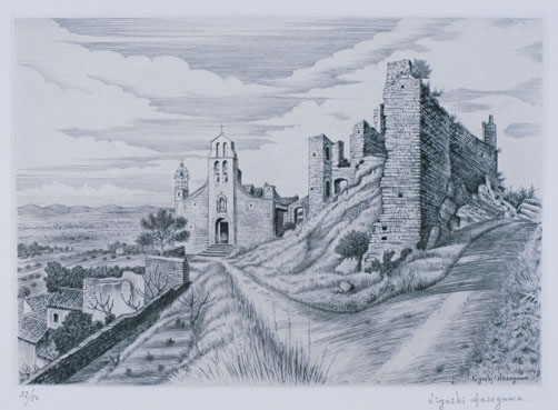 長谷川潔:ジゴンダ古村の礼拝堂 (1938)