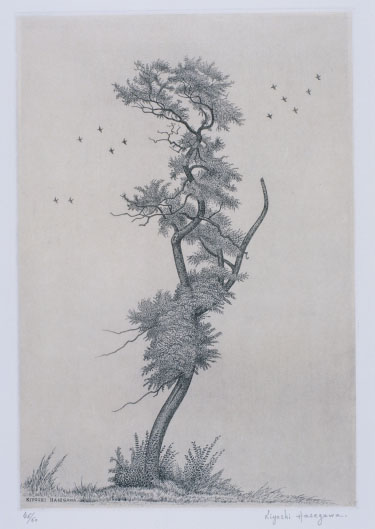 長谷川潔:アカシヤの老樹 (1954)