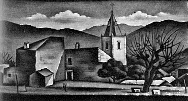 長谷川潔:シャトー・アルヌーの寺院 (1932)