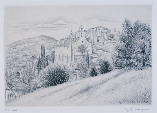 長谷川潔:村の礼拝堂〈未完成〉 (1939)