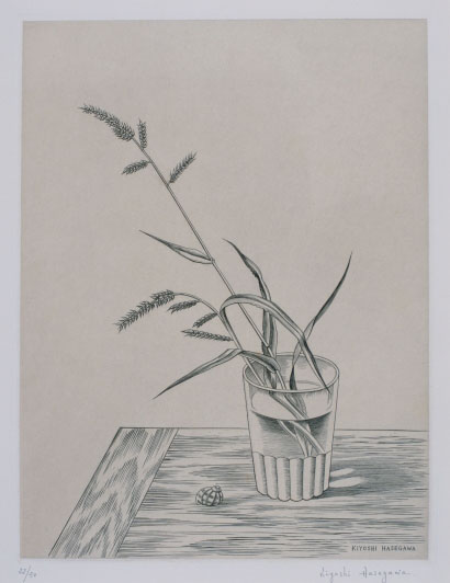 長谷川潔:コップに挿した野草 (1953)