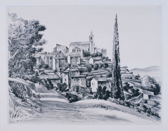長谷川潔:ソリエスの村 (1935)