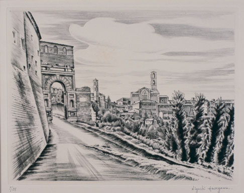 長谷川潔:サン・ジロラーモの門(イタリア、ペルジヤ) (1937)