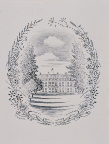 長谷川潔:仏国大統領エリゼ宮饗宴メニュー用銅版画 (1955)