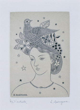 長谷川潔:地球(1955年年賀状用及びマルセル・ベアリュ短篇集『空飛ぶ街』《1970年アンプニタン書房刊》扉絵) (1954)