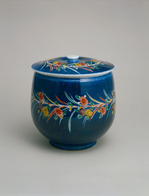 加藤土師萌:吹墨色絵菊花文飾壺 (c.1963)