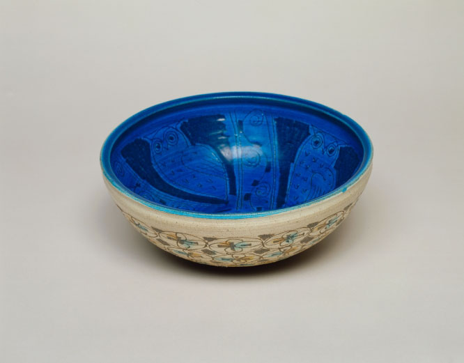 加藤土師萌:碧釉木兎文鉢 (1961)