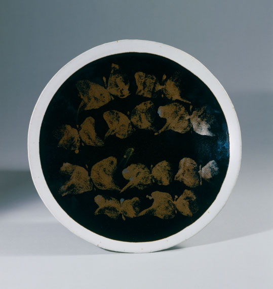 木村盛和:白ふち釉描天目釉大皿 (1966)
