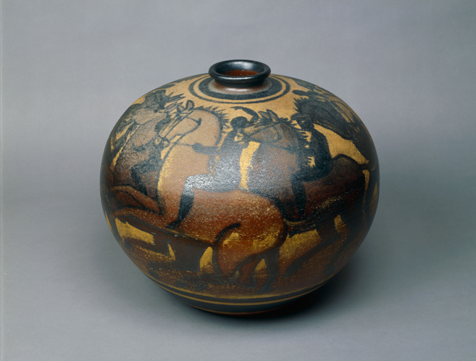 六代清水六兵衞:玄窯騎馬群像壺 (1956)