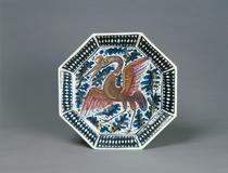 六代清水六兵衞:染付鶴文飾皿 (1963)