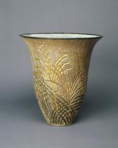 六代清水六兵衞:銀白泑刻文芒花瓶 (1980)