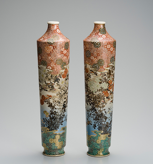濱田:京薩摩花鳥図長瓶 (Meiji Period( 1868-1912))