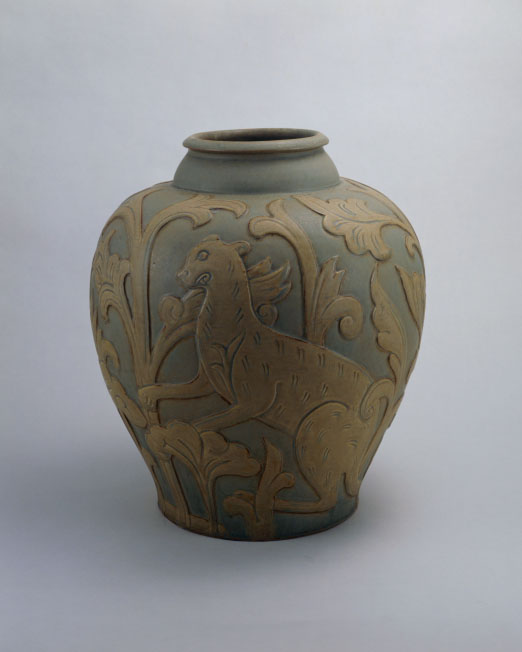 澤田宗山(誠一郎):樹間立獣文壺 (Early Showa Period (c. 1926-40))