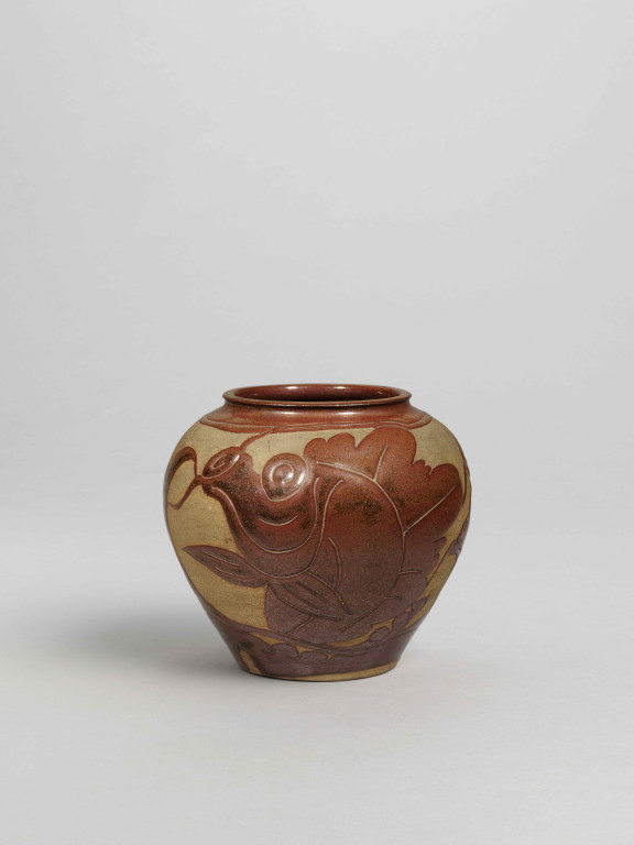 河井寬次郎:鉄薬魚文壺 (1923)