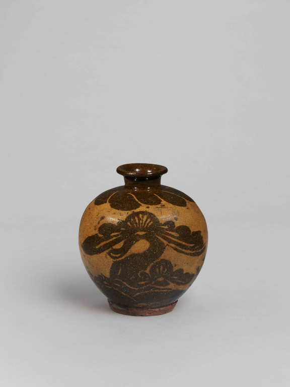 河井寬次郎:象嵌松笹文扁壺 (c.1930)