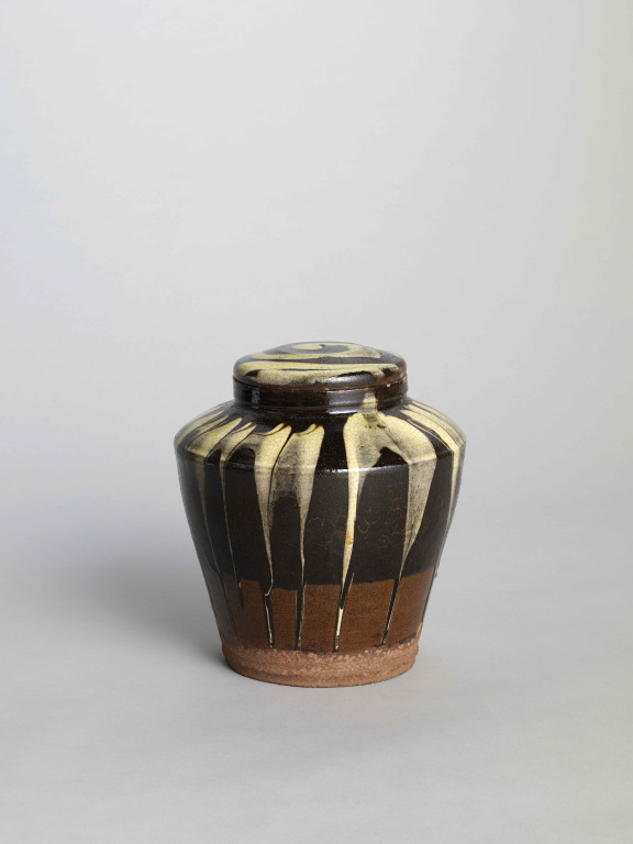 河井寬次郎:鉛釉白流蓋付壺 (1930)