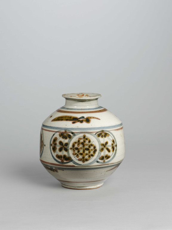 河井寬次郎:白地七宝丸紋壺 (1932)